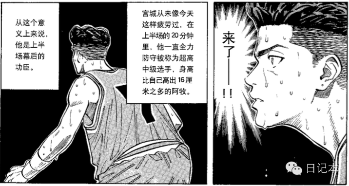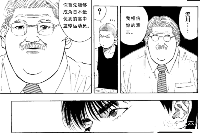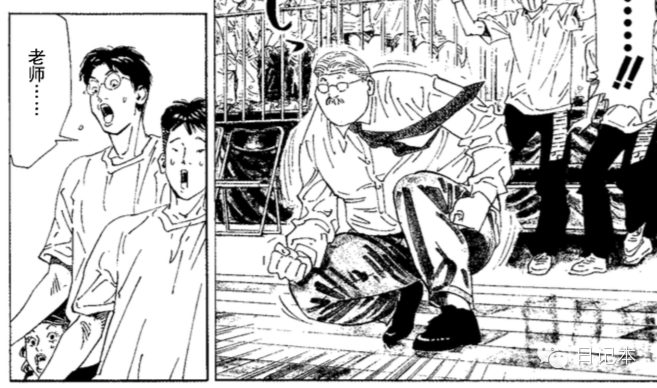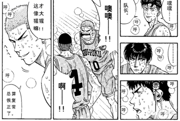 这个质变让安西老爹,曾经的日本国手,号称“白发鬼”的教练都雀跃而起。印象中这是全书中他唯一一次这样的兴奋,包括最终战胜山王,他也只是举起双手而已。