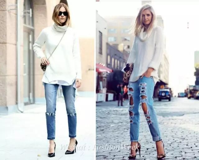 不想有太强的拘束感,可以选择搭配牛仔裤,尤其是破洞的: